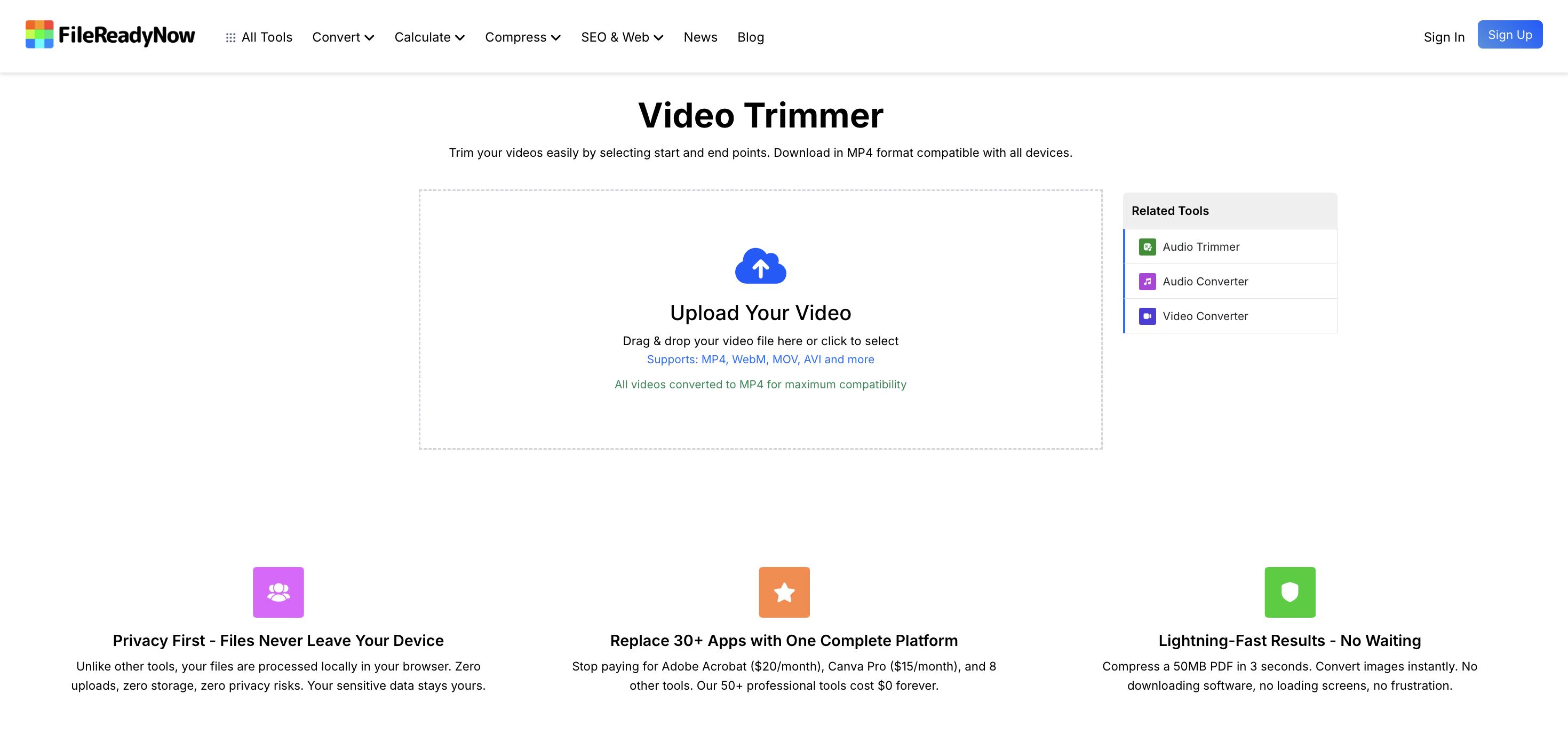 If you're looking for a tool that lets you trim your video in the simplest way possible, FileReadyNow is your first stop. It’s built for speed and convenience, making it ideal when you want to cut a clip quickly without unnecessary steps.