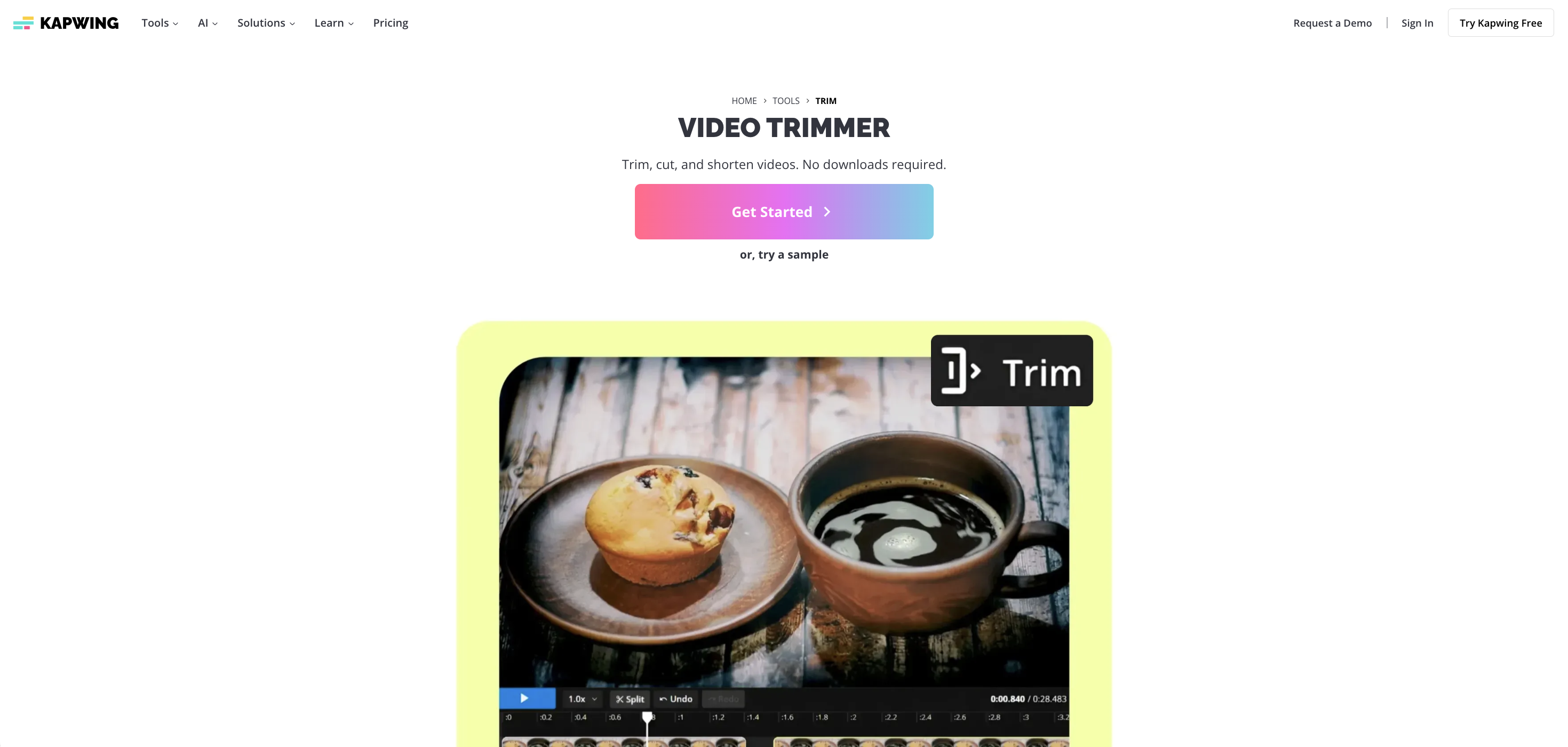 Kapwing remains one of the most popular online editors thanks to its modern design, responsive timeline, and useful AI features. Its trimming interface feels smooth, and you can pair it with subtitles, templates, and resizing tools.