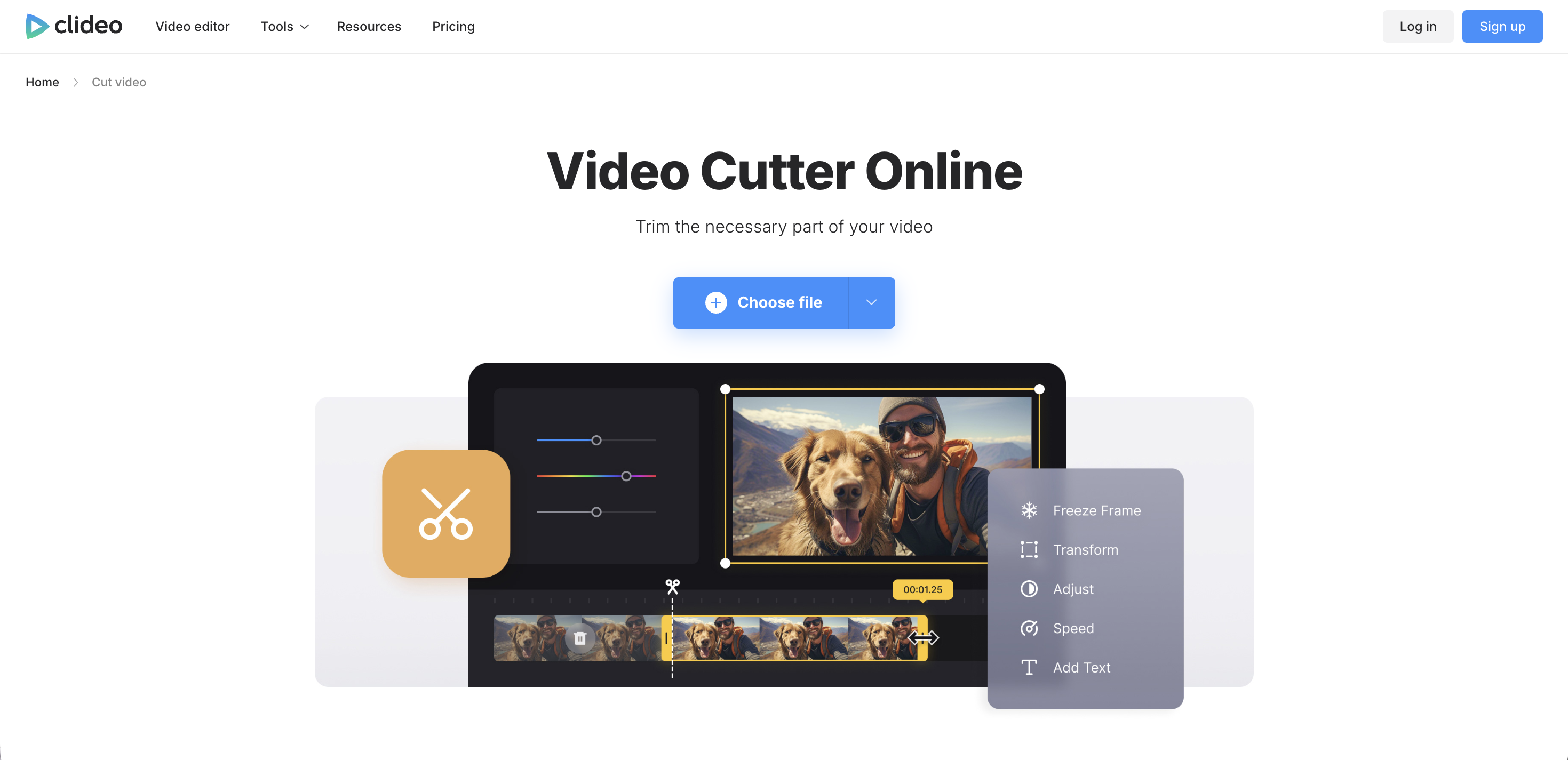 Clideo keeps video trimming extremely simple — upload, set trim points, and download.