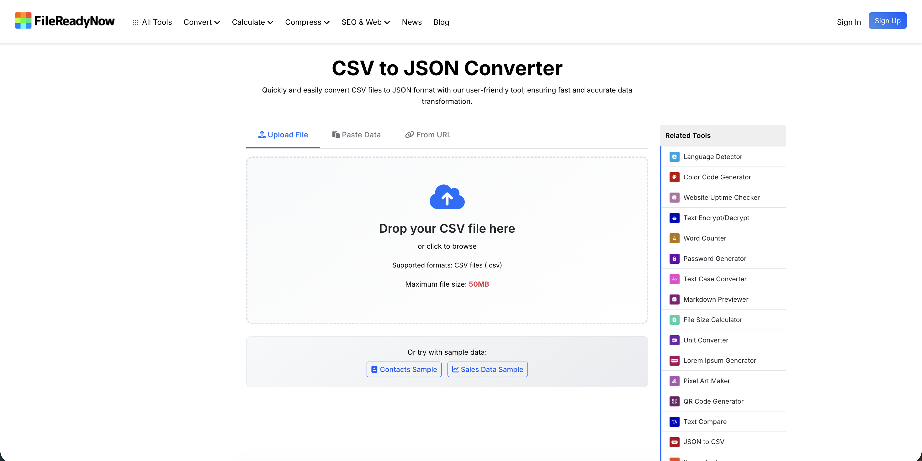Sometimes you just want something fast and distraction-free. The CSV to JSON converter from FileReadyNow focuses on quick, browser-based conversion without extra complexity.